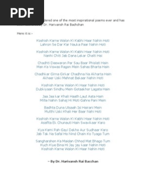 Harivansh Rai Bachchan Poem Koshish Karne Walon Ki : So i ended up remembering a poem.