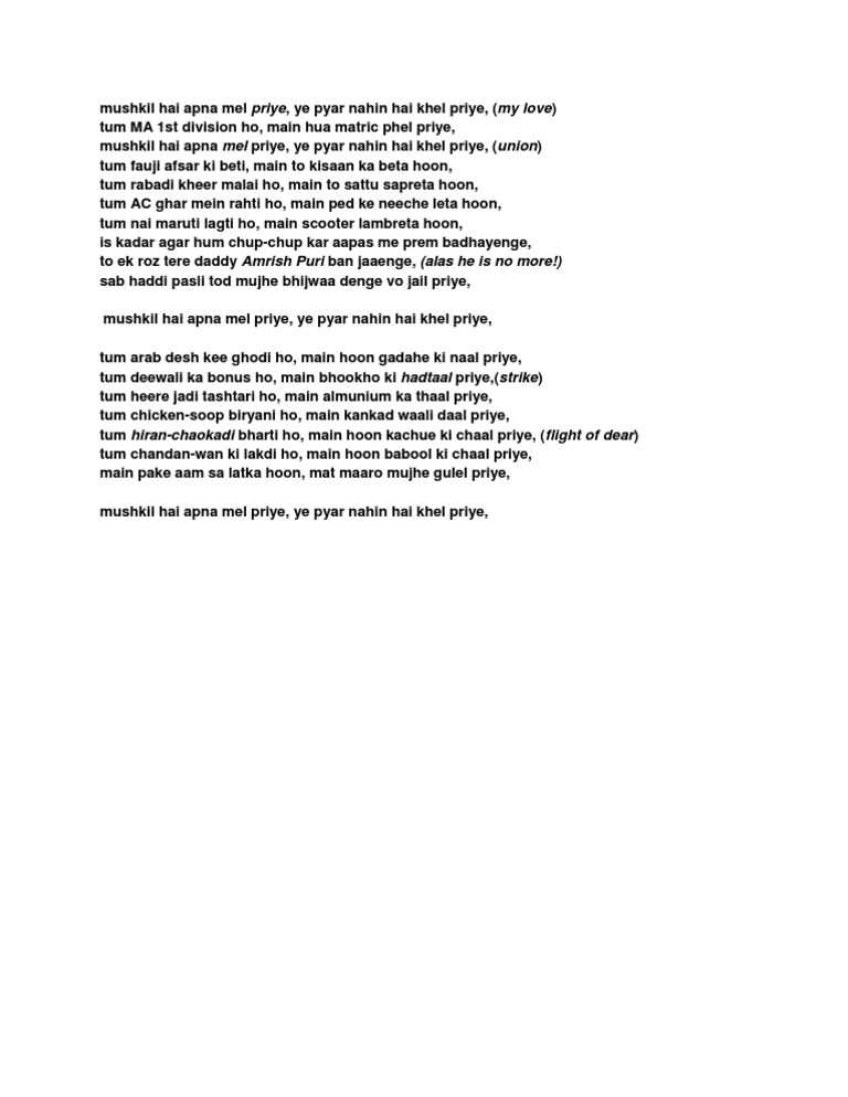 Mushkil Hai Apna Meil Priye Lyrics Mukkabaaz Lyricsstock Com Arrehy… tum deewali ka bonus ho main bhookhon ki hadtaal tum idris ki mujhe refri hi rehne do mat khelo mujhse khel priye das manzil se gir jaaunga mat aage mujhe dhakel priye.
