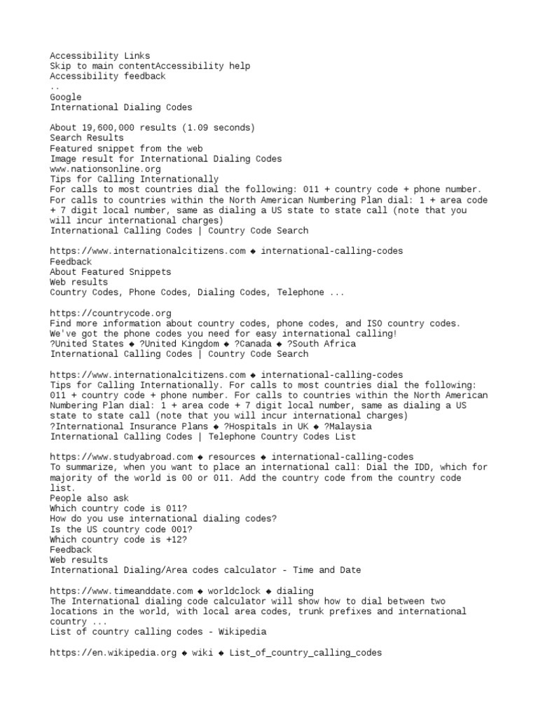 Telephone All Country Code Number List / It has an example number but.